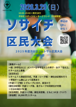 2025年度渋谷区秋季女子フットサル(ソサイチ)大会要項(20251124) (PDF)です。